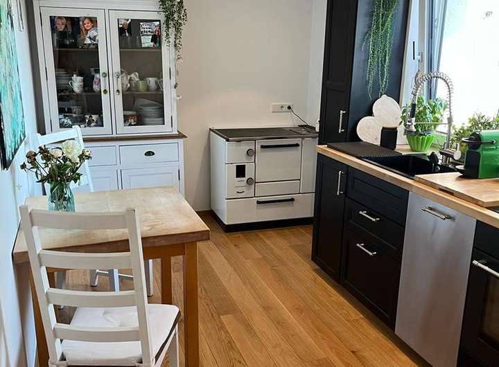 - Küche in EG mit Wirtschaftsherd, verbleibt im Objekt