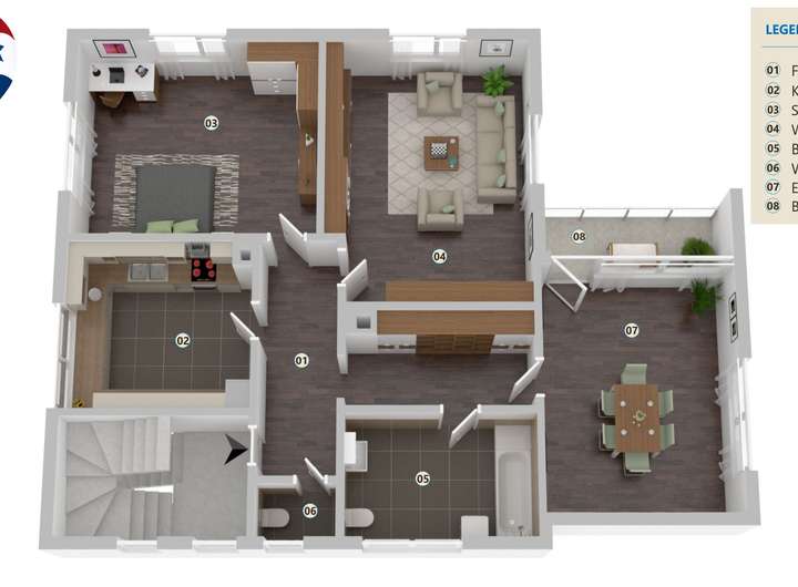 Das Haus ist durch ein geräumiges Treppenhaus in drei separate Wohnungen aufgeteilt, was eine flexible Nutzung ermöglicht. Insgesamt umfasst das Anwesen acht Zimmer, die Ihnen vielfältige Gestaltungsmöglichkeiten bieten. Hier können Sie Ihren Wohnträumen freien Lauf lassen und die Räume ganz nach Ihren individuellen Bedürfnissen nutzen.