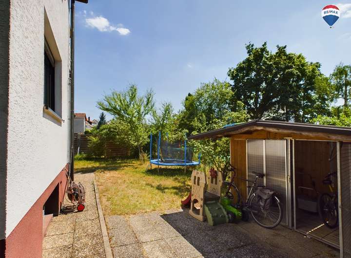 Darüber hinaus bietet das Grundstück ausreichend Platz für Aktivitäten im Freien. Gestalten Sie den Garten nach Ihren Vorstellungen und genießen Sie die sonnigen Tage im Grünen.