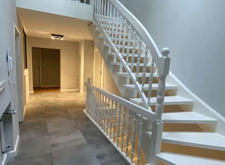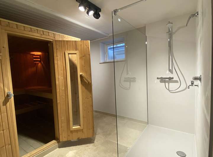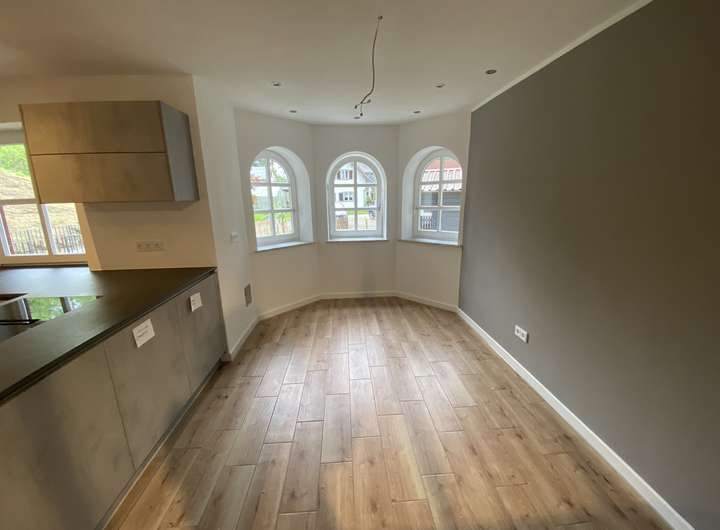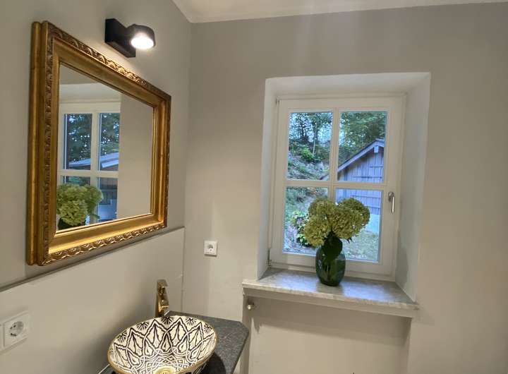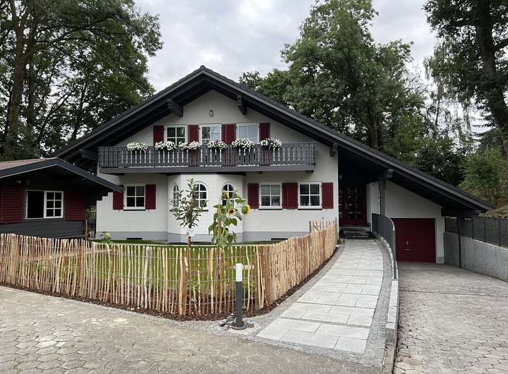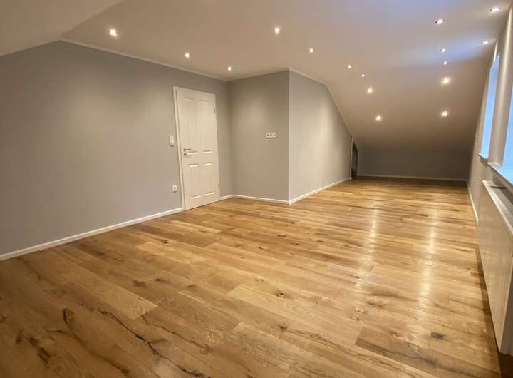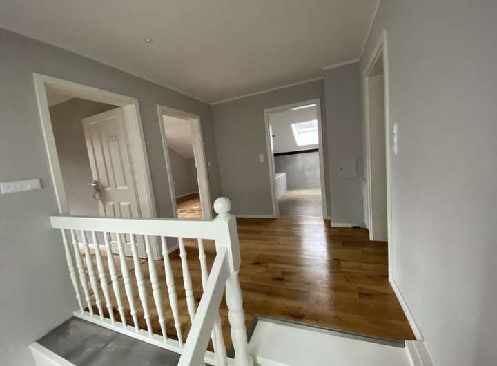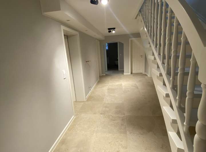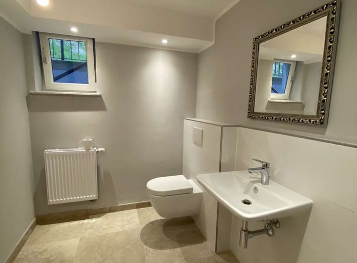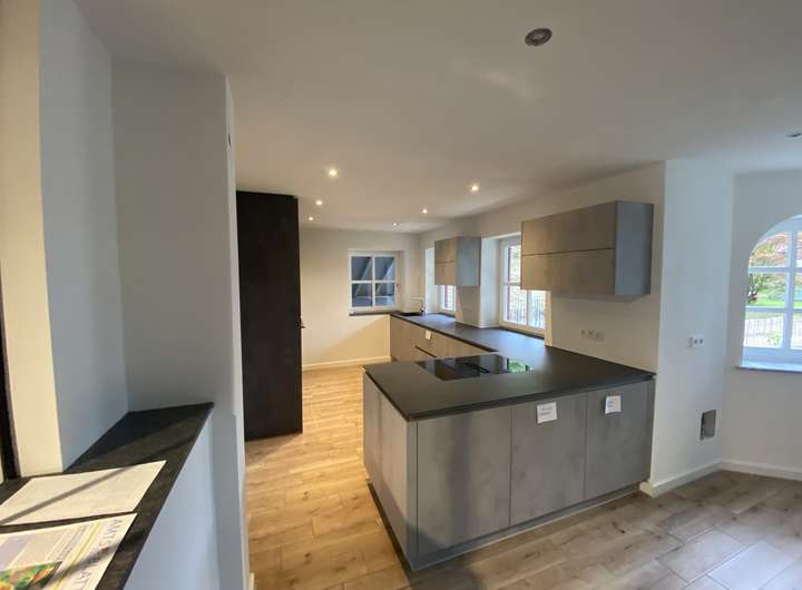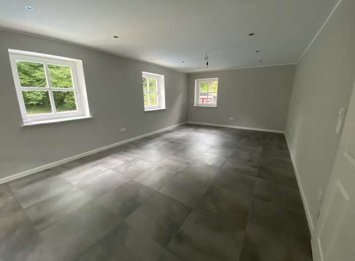 - Kernsanierung in 2023 erfolgte mit hochwertigen Materialien wie Eichen-Landhausdielen und großformatigen Fliesen (u.a. teilw. grau, oder Solnhofer Art)