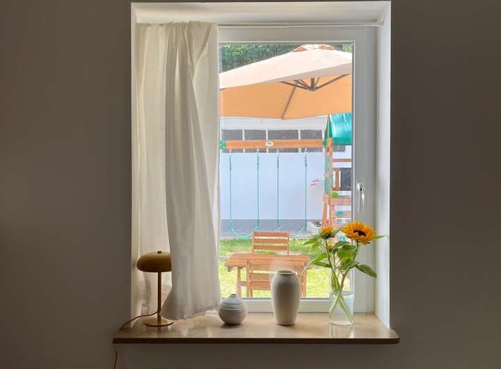 Eine noch vor kurzem sanierte, helle, freundlich-frische Doppelhaushälfte, mit jeder Menge Platz. Sie ist durchgehend sonnig, hell und sehr einladend, und das gilt für jeden Raum! Sie hat eine warme, sanfte Atmosphäre und eine ruhige, harmonische Ausstrahlung, geprägt von warmen Holztönen und der Farbe Weiß. Auch das ist ein Grund für die angenehme Großzügigkeit, die sich schon beim Betreten der Wohnung einstellt.