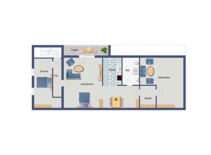 Eine ca. 64m² große Ferienwohnung befindet sich im Dachgeschoss des Hauses.