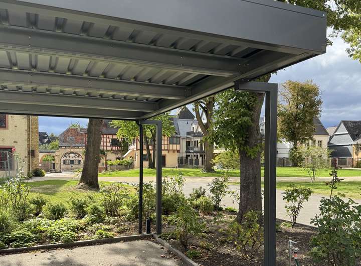 Der Zugang zum Haus sowie den Pkw-Stellplätzen - jeweils mit abschließbarer Steckdose - erfolgt über ein elektrisches Hoftor mit Videosprechanlage. Die Büroräume im Erdgeschoss sind bequem über die Rheingauer Straße zugänglich.