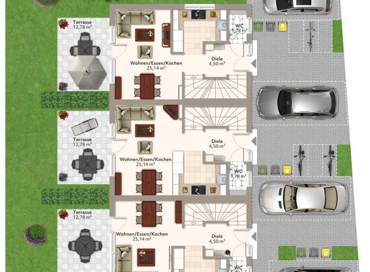 Zwei Stellplätze pro Haus runden das Angebot ab.