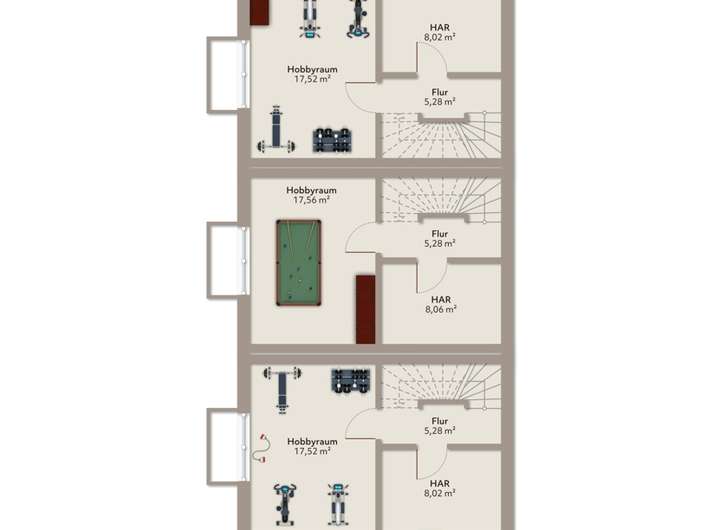 Im Kellergeschoss stehen Ihnen ein großzügiger, beheizter Hobbyraum, sowie ein Hauswirtschafts- und ein Technikraum zur Verfügung.
