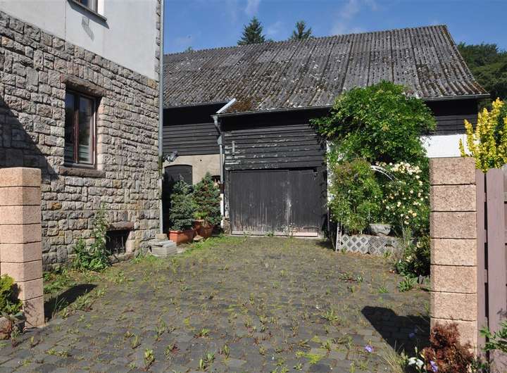 Denkmalgeschütztes Eifelbruchsteinhaus,massive Scheune und gepflasterter Innenhof