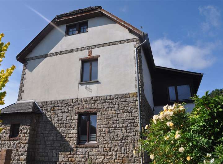 Das freistehende, denkmalgeschützte ca. 200 m² große Wohngebäude mit einem schönen gepflasterten Innenhof sowie einer befahrbaren, massiv erbauten Scheune mit einer beachtlichen Grundfläche von ca. 220 m² wurde ca. im Jahr 1920 im typischen Stil eines Eifelhauses mit Bruchsteinsockel erbaut.