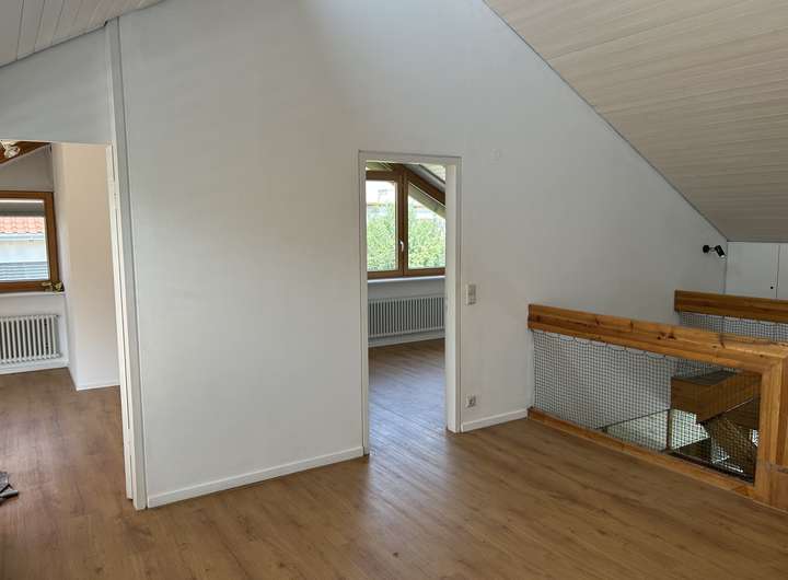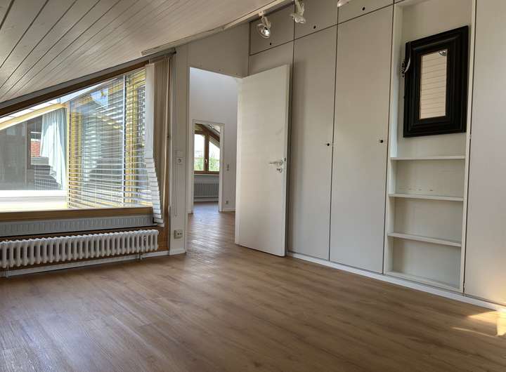 OG: 3 Schlafzimmer, 2 Bäder, großer Arbeits-und Spielbereich, Dachbalkon, Abstellraum, viele Einbauschränke