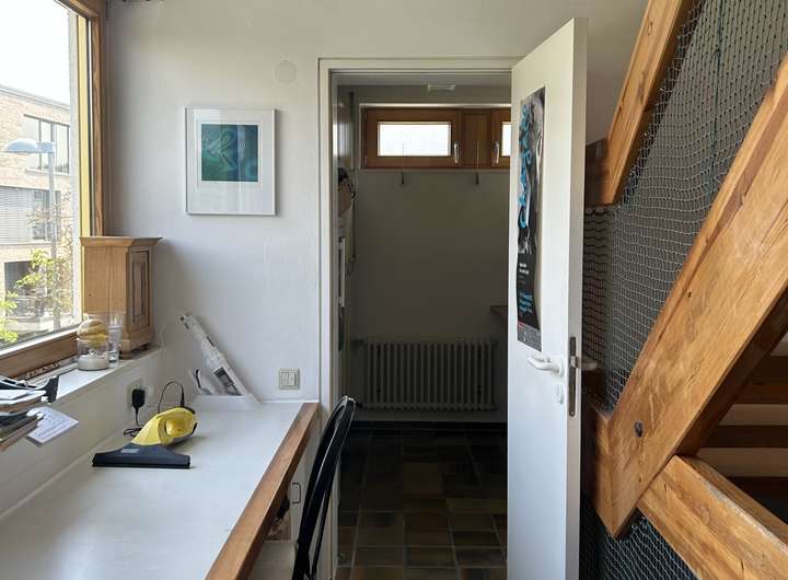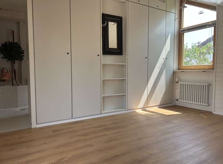 This three-story architect-designed house is an attractive property featuring high-quality interior fittings. As is typical for modern homes, the five inviting rooms include two bathrooms and a separate guest WC. A built-in kitchen with a pantry saves you time and effort when moving in, so you can essentially start cooking right away. Built-in wardrobes throughout the house provide ample storage space.