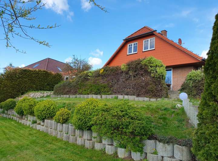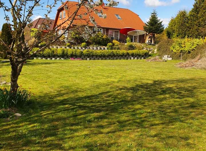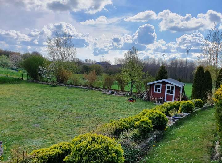 Dieses 2002 erbaute Haus steht auf einem sonnigen 1600 qm Süd-Grundstück mit unverbaubarem Blick auf naturgeschützte Wiesen und Felder. Als energiesparendes Öko-Haus wurde es mit seiner klassischen Holzständerkonstruktion und der wartungsarmen Klinkerfassade. Neue Kunstoff Thermopane Fenster 3-fach-Verglasung und Haustür zwischen 2018 - 2022. Aktuell wurden und werden zusätzlich alle Fenster und Eingangstüren gegen top aktuelle Modelle getauscht. Auf ca. 165 qm Wohnfläche, finden Sie 7 helle Zimmer mit 2 Bädern und einer Wohnküche (mit Edelstahl-Geräten), die sich zu dem Wohn-/Essbereich und den beiden großzügigen Terrassen hin öffnet. In dem lichtdurchfluteten Wohnbereich, der mit Echtholz- Parkett Birke ausgelegt ist, wurde ein wohlig warmer Kamin-Ofen angeschlossen. Die Bäder sind hochwertig weiss mit einer Designer-Bordüre gefliest und bieten neben einer schönen Eck-Badewanne auch noch eine Wellness-Massage-Dusche. Warmwasser und Heizung werden durch eine effiziente Gas-Zentralheizung erzeugt. Auf dem mit Gartenhäuschen sehr weitläufigen und liebevoll angelegten Süd-Grundstück, stehen bereits 2 Stellplätze und ein Carport zur Verfügung. Der Garten wurde umzäunt und in eigenarbeit angelegt. Ein zweiter Bauplatz wäre hier auch möglich!
