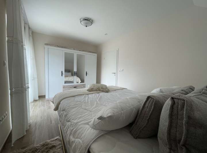 Top quality equipment and completely furnished! Tiles and Vinyl floors with floor heating, built-in-kitchen, high-speed-internet, bedrooms with A/C, garage with wall box, parking lots, patio, big yard!