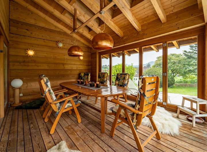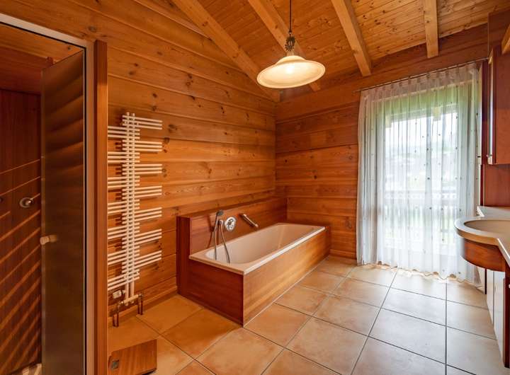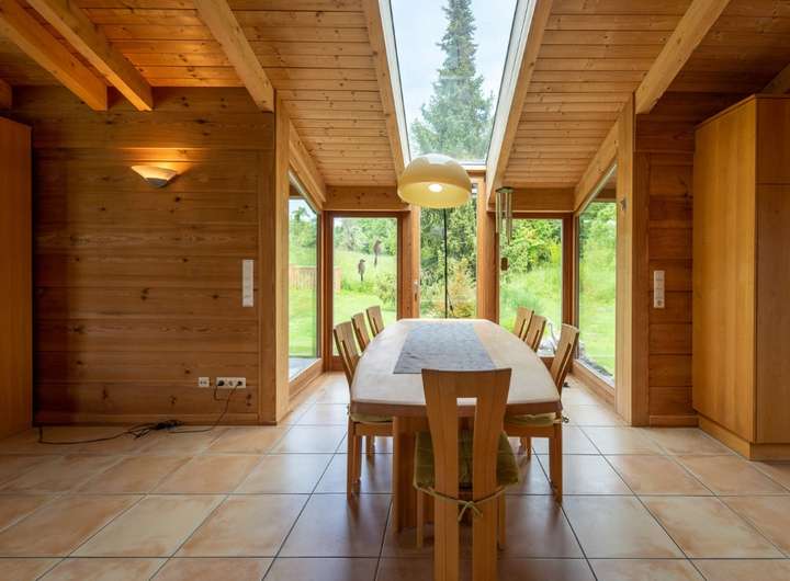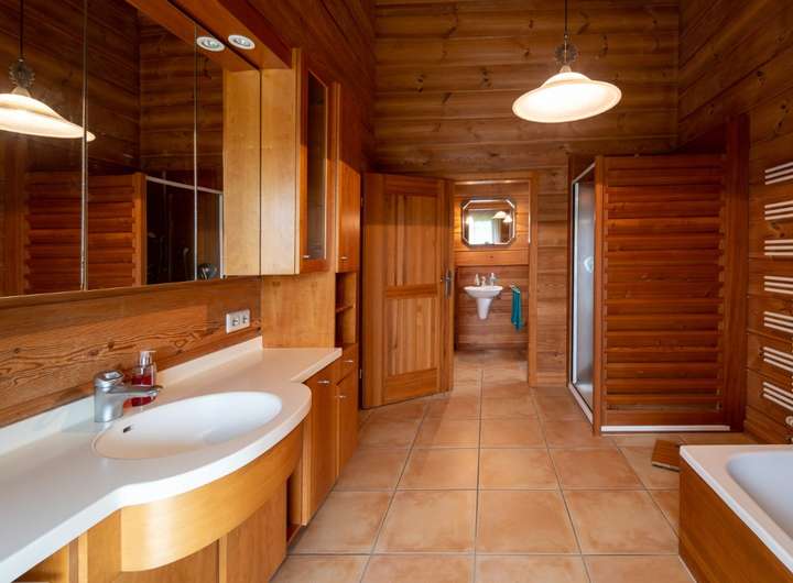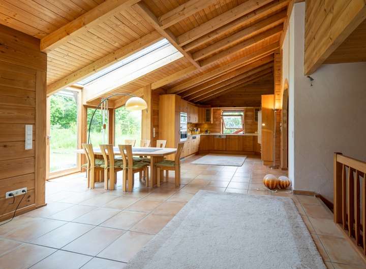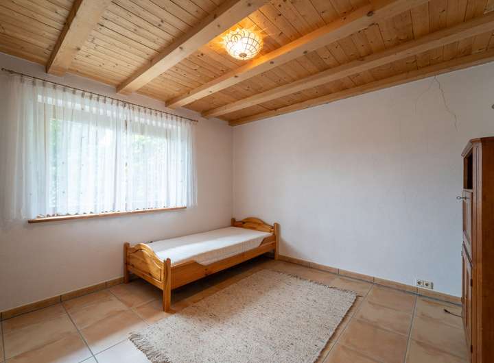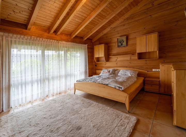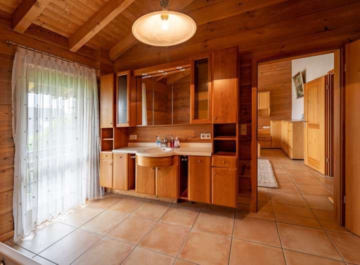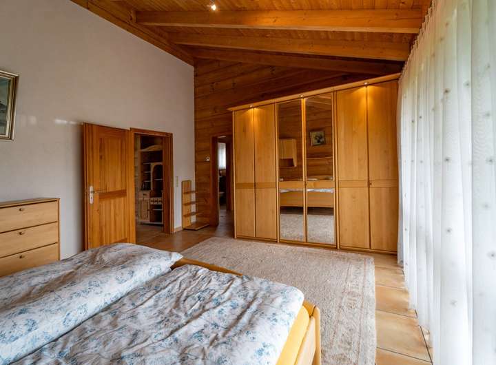 Wenn Sie es stadtnah und trotzdem ruhig mögen, ist dieses Objekt perfekt für Sie, zentral gelegen und trotzdem im grünen, hier kommen die Rehe bis an die Grundstücksgrenze und manchmal sogar direkt bis an das Haus, der weitläufige Garten wird durch einen Mähroboter gepflegt damit Sie nicht viel Aufwand damit haben und die Zeit ohne lästige Gartenarbeit genießen können. Das Haus wurde in massiver Holzbauweise errichtet, wodurch Sie ein perfektes Raumklima im Haus haben. Das Hauptschlafzimmer verfügt über ein separates großzügiges Bad mit Wanne, Dusche und einem abgetrennten WC.