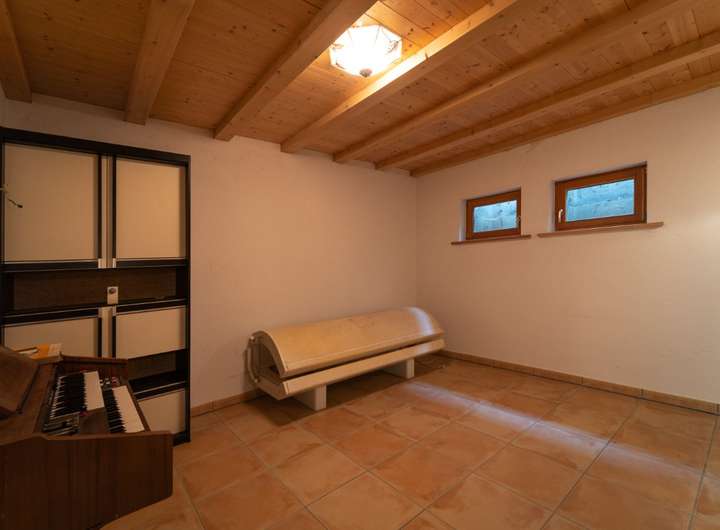 Im unteren Bereich sind zwei weitere Zimmer die Sie als Kinder-, Gästezimmer oder Büro nutzen können, hier gibt es noch ein kleines Bad mit einer Dusche und einem WC. Zwei große Räume stehen Ihnen für Ihre Hobbies oder Wellness zur Verfügung.