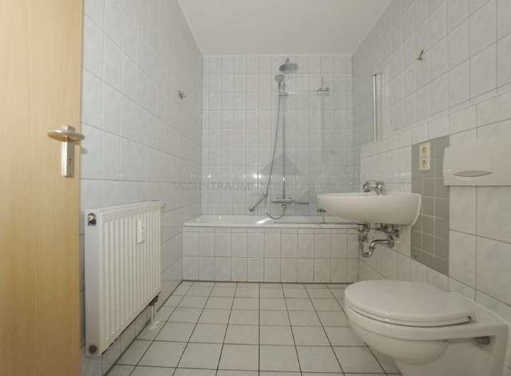 + modern gefliestes Bad mit Badewanne und Waschmaschinen-Stellplatz