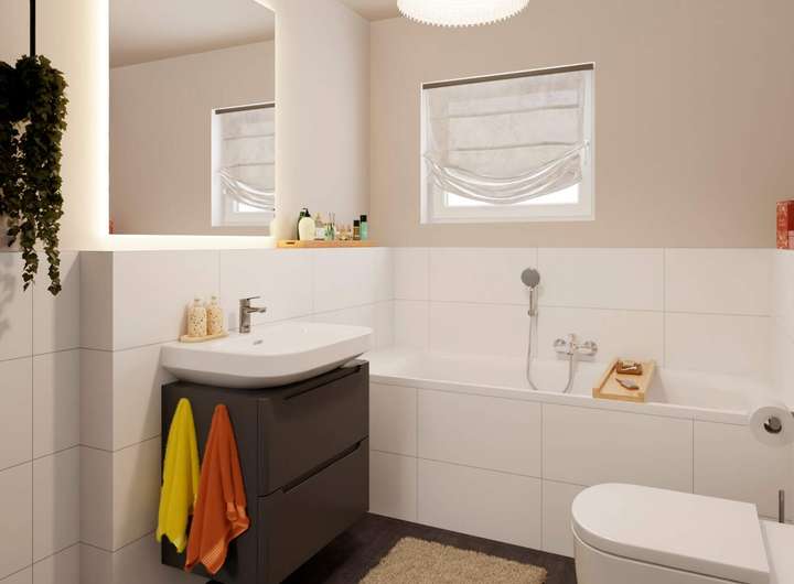 Zuhause ankommen und sich vom ersten Moment an wohlfühlen: Im Eingangsbereich des neugebauten Hauses empfängt Sie eine Diele mit Zugang zum Keller und zur Garage. Im Erdgeschoss verbinden sich Kochen, Essen und Wohnen zu einem sehr großzügigen offenen Lebensbereich mit Zugang zur Terrasse und in den Garten. Ein Duschbad ergänzt das Raumangebot im Erdgeschoss. Eine Treppe höher warten zwei gemütliche Schlafzimmer, ein weiterer Raum für Büro oder Gäste und ein helles Tageslichtbad mit bodengleicher Dusche und Badewanne. Im Dachgeschoss lädt das große Studio zum Verweilen ein mit direktem Zugang zu Ihrer Dachterrasse.