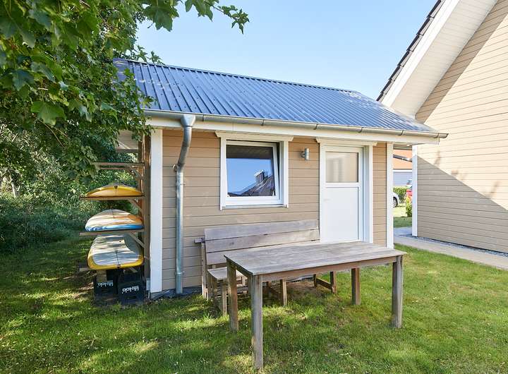 Das ca. 539 m² große Grundstück umfasst einen liebevoll angelegten Garten sowie ein gedämmtes, ca. 12 m² großes Gartenhaus im Stil des Haupthauses – ideal als Atelier, Homeoffice oder Wellnessraum. Der Garten ist grün und vielfältig eingewachsen, an den hinteren Teil des Grundstücks schließt sich ein Kleingartenverein an. Ein öffentlicher Grünstreifen auf der einen und ein Doppelhaus auf der anderen Seite, rahmen das Grundstück friedvoll ein. Die ruhige Wohnstraße endet in einem Wendehammer, von hier geht ein Fußweg weiter zum Olsdorfer Sielzug, ein breiter Grünstreifen, der zu spontanen Spaziergängen einlädt. Ein Doppelcarport, ein zusätzlicher Stellplatz und ein angrenzender Schuppen mit Platz für Fahrräder und Surfbretter runden das Angebot ab.