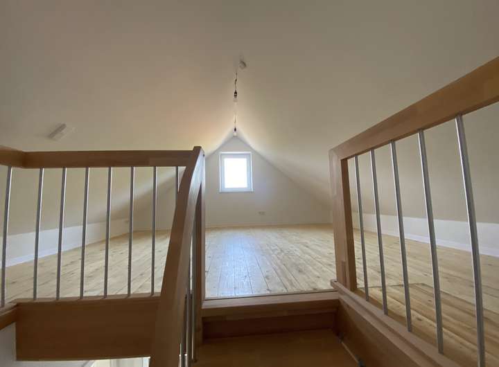 Im Dachgeschoss befindet sich ein weiterer ca. 25 m² Großer Raum der als Galerie, Arbeitsplatz, Spielzimmer oder auch Schlafzimmer genutzt werden kann.