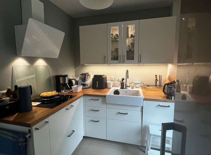 Die Einbauküche gehört nicht zur Mietsache und soll an den neuen Mieter verkauft werden. Absprache zur Wohnungsbesichtigung mit dem derzeitigen Mieter.