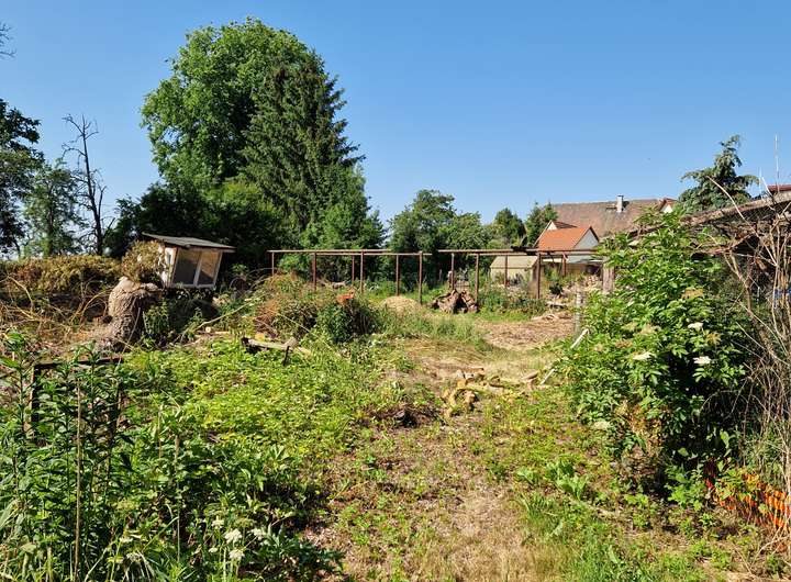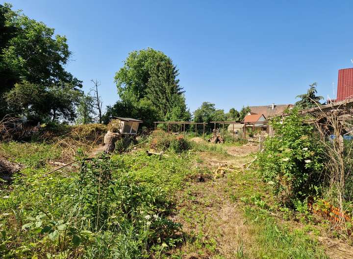 Das Grundstück wurde zuletzt als Garten genutzt und wird derzeit beräumt. Die umliegenden Grundstück sind schon bebaut.