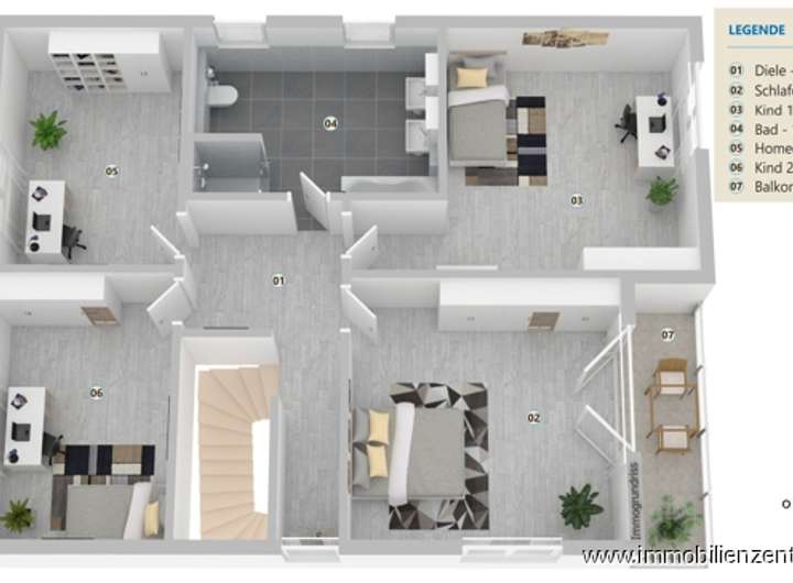 Im ersten Obergeschoss finden Sie 2 geräumige Kinderzimmer, das Masterbad mit Wanne und Dusche, das Elternschlafzimmer mit Balkon und ein weiterer Raum, welcher als Gästezimmer, Homeoffice oder weiteres Kinderzimmer dienen könnte.