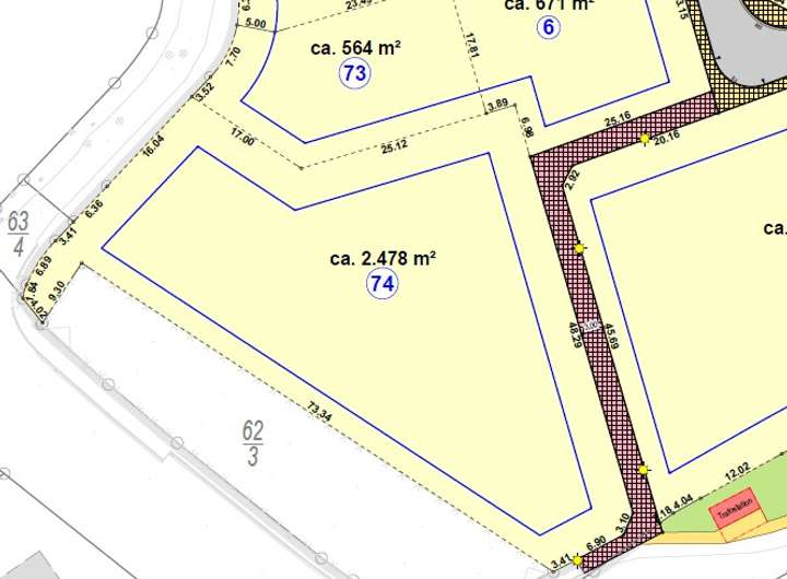 Das angebotene Grundstück hat eine Fläche von ca. 2.478 qm (nicht teilbar).