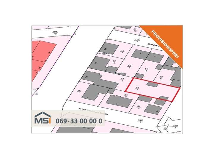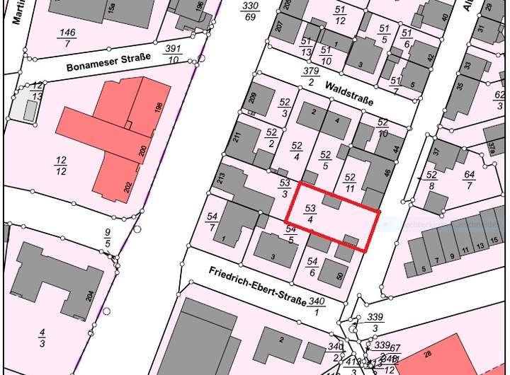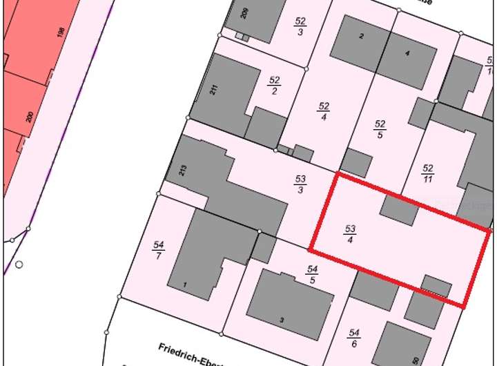 Bei dem hier zum Verkauf stehenden Baugrundstück ohne Altbestand in ruhiger Lage im südlichen Teil Bad Vilbels handelt es sich um das Flurstück 53/4 mit einer Fläche von 443 m². Es ist rechteckig geschnitten. Die Straßenfront verfügt über eine Breite von ca. 14,5 Meter. Die Grundstückstiefe beträgt ca. 30 Meter.