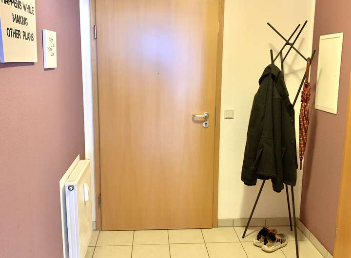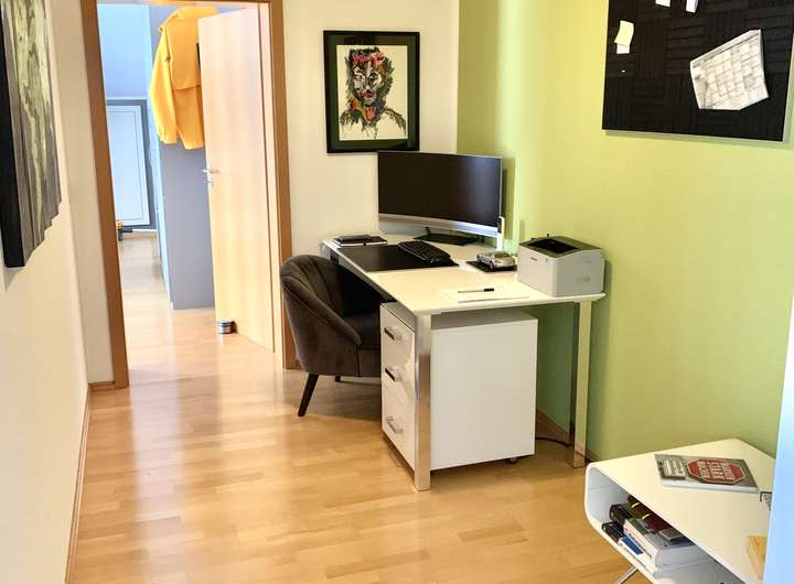 Breiter Flur als Arbeitsbereich: Der breite Flur zwischen den Zimmern eignet sich hervorragend als Arbeits- oder Homeoffice-Bereich. Hier können Sie in aller Ruhe arbeiten und haben genügend Platz für einen Schreibtisch und Stauraum.