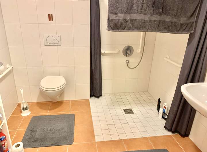 - Gefliestes Bad mit ebenerdiger Dusche