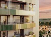 Das 16-stöckige Gebäude liegt zwischen Grünanlagen und Parks. Durch die Fassadengestaltung der ODE LOFTS mit hochwertigen Keramikscherben in unterschiedlichen Farbtönen bietet die Architektur des Gebäudes ein harmonisches Zusammenspiel mit seiner Umgebung. Die Umwandlung des Büro- zu einem Wohngebäude ist nicht nur ein beeindruckendes Beispiel für modernes Wohnen, sondern auch ein wichtiger Beitrag für eine nachhaltigere und lebenswertere Stadt. Durch die Umnutzung vorhandener Bausubstanz und der Wiederverwendung bestehender Ressourcen wird nicht nur neuer Wohnraum geschaffen, sondern es werden gleichzeitig Baumaterial und dadurch auch Emissionen eingespart.