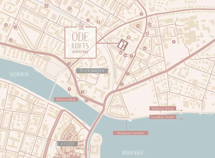 Die malerische Landschaft des Bodensees ist weit bekannt. Von den ODE LOFTS erreichen Sie in weniger als 10 Gehminuten den Bodensee. Zudem gibt es in der Hochschulstadt immer Neues zu entdecken. Beispielsweise beim Seenachtsfest mit seinem spektakulären Feuerwerk, an der Fasnacht oder bei verschiedenen Festivals. Im Theater, der Philharmonie, zwei Kinos, einigen Museen und Galerien gibt es ein breites kulturelles Angebot. Zahlreiche Cafés, Restaurants und Geschäfte bieten ein mediterranes Flair.