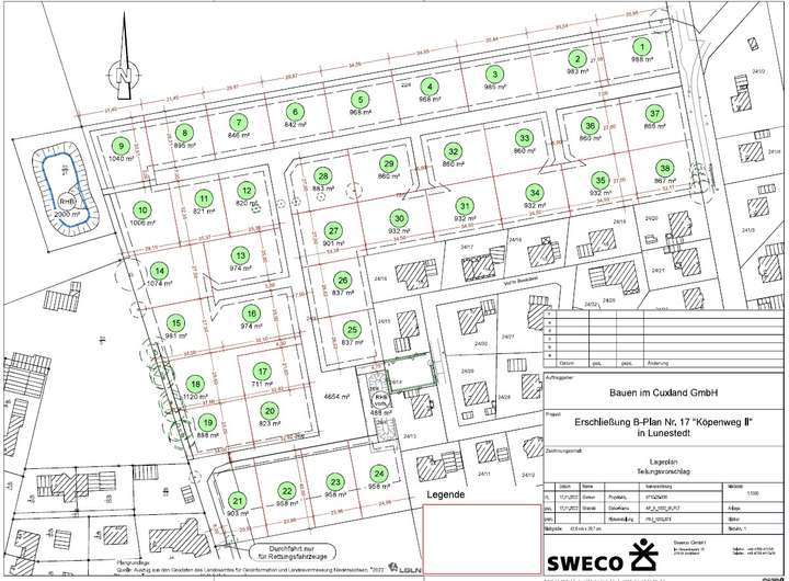 Für den Bau von Einzel- bzw. Doppelhäusern und Mehrfamilienhäusern geeignet. Die Grundstücksgrößen liegen zwischen 711 m² und 1.074 m², der Quadratmeterpreis liegt zwischen 83,00 €/m² - 94,00 €/m² - Preisliste auf Anfrage. Eine Bebauung ist voraussichtlich ab Juni 2023 möglich.