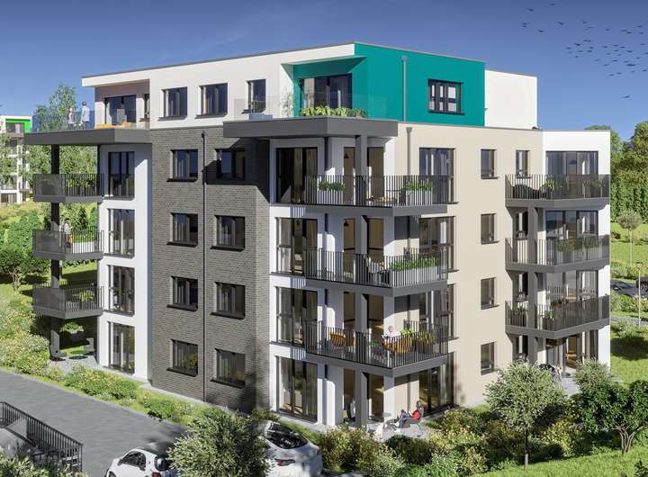 Das neue Haus wird mit viel Gefühl in das Umfeld eingefügt. Die modernen Wohnungen überzeugen durch ihre gelungene Verbindung von Licht, Exklusivität und optimaler Nutzungsmöglichkeit. Die Wirkung der bodentiefen Fenster mit feinen Unterteilungen wird durch die transparenten Balkonbrüstungen unterstrichen. Farben, Formen und Materialien sind harmonisch aufeinander abgestimmt. Das Gebäude wird in solider Mauerwerksbauweise errichtet und erfüllt alle Anforderungen gemäß GEG 2020. Fundamente und Bodenplatte in Beton. Die Außenwände sowie die tragenden Innenwände werden aus Kalksandstein bzw. Stahlbeton hergestellt. Die Geschossdecken bestehen aus Stahlbetondecken. Die Geschosstreppen sind ebenfalls aus Stahlbeton gefertigt. Sie werden mit polierten Granitstufen belegt. Auf das Außenmauerwerk wird ein Wärmedämmverbundsystem (WDVS) aufgebracht.