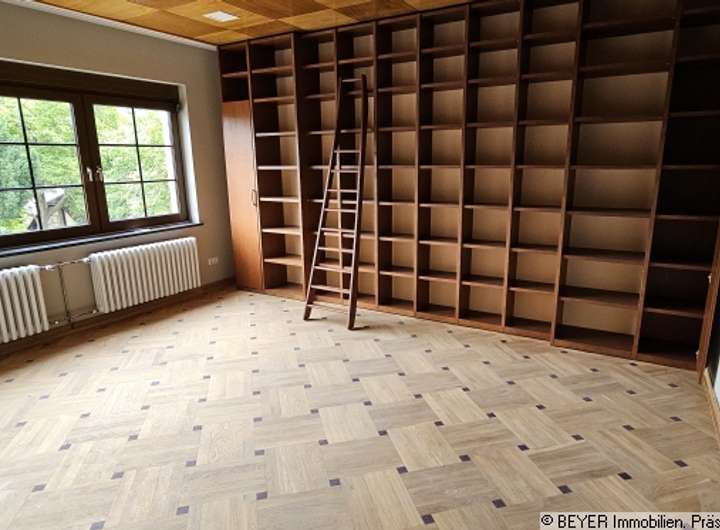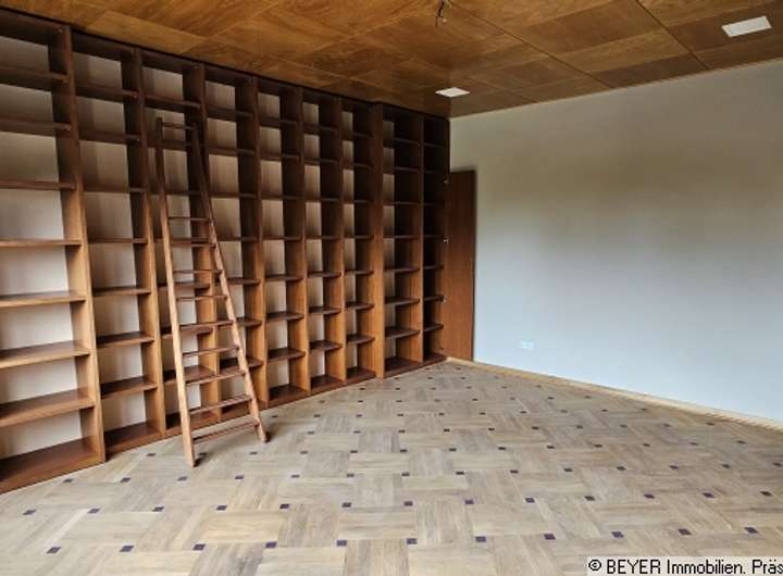 Die Villa verfügt über insgesamt sieben Zimmer, die vielseitig nutzbar sind und ausreichend Platz für individuelle Lebenskonzepte bieten. Besonders eindrucksvoll ist das ausgebaute Dachgeschoss, das als Atelier gestaltet wurde und sich mit seiner hellen, offenen Atmosphäre ideal als Raum für Kreativität oder persönliche Rückzugsmöglichkeiten eignet. Eine gemütliche Bibliothek schafft ein behagliches Ambiente für entspannte Lesestunden, während die hochwertige Einbauküche bereits vorhanden ist und mit modernem Design sowie hoher Funktionalität überzeugt.