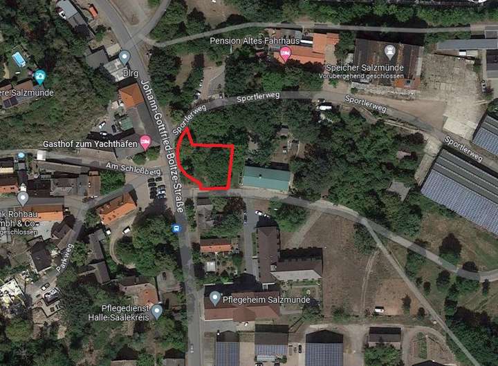 Das Baugrundstück befindet sich auf der Ecke Johann-Gottfried-Boltze-Straße und Sportlerweg in Salzmünde. Die Saale befindet sich in unmittelbarer Nähe. Durch die zentrale Lage des Grundstücks sind auch Geschäfte des täglichen Bedarfs und Ärzte fußläufig erreichbar. Das Grundstück muss noch vermessen werden.