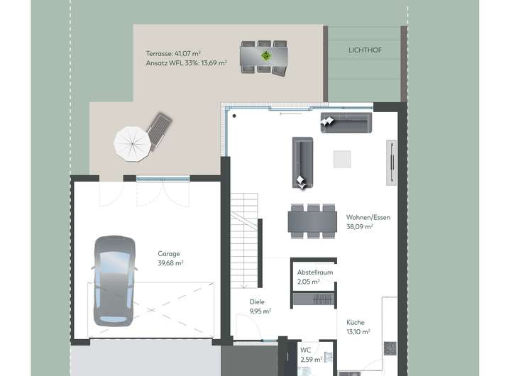Das Haus 2, ein klassisches Kettenhaus, nur mit der Garage an das Nachbarhaus angebaut, gibt einem das Gefühl, in einem frei stehenden Haus zu leben - der Vorteil ist die effektive Grundstücksnutzung, so bieten knapp 380 m² viel mehr Freiraum als gedacht und ermöglichen Ihnen schöne Stunden mit Ihrer Familie und ausreichend Platz zum Nachbarn. Die nach Südwesten ausgerichtete Terrasse lädt vor allem in den warmen Monaten zum Verweilen und Genießen ein. Die 168 m² gut geschnittene Wohnfläche wird durch eine Ausbaureserve im Untergeschoss, die schon mit einem Lichthof für viel Tageslicht versehen ist, ergänzt und bietet Ihnen so nochmals viele individuelle und praktische Nutzungsmöglichkeiten. Gerne übermitteln wir Ihnen das ausführliche Exposé und freuen uns, Ihnen bei einem persönlichen Beratungsgespräch in unserem Büro die weiteren Vorzüge der einzelnen Häuser vorzustellen.