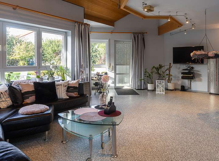 Mit insgesamt 9 Zimmern, darunter 3 Schlafzimmer und 3 Bäder, das Hauptbadezimmer hat einen Hösch Whirlpool, bietet es ausreichend Platz für Komfort und Entfaltung. Die oberste Etage beherbergt noch ein großzügig ausgebautes Studio, das vielseitig genutzt werden kann, sei es als Arbeitszimmer, Bibliothek oder Rückzugsort für kreative Aktivitäten.