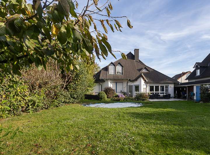Das Haus beeindruckt von innen und außen gleichermaßen. Ein großzügiger Garten mit schöner Privatsphäre wartet auf Sie.