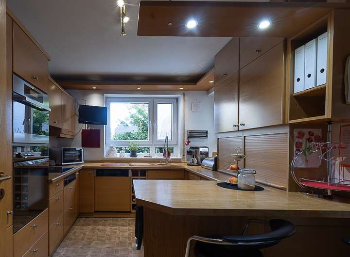Hier befindet sich auch eine Sauna, die perfekte Entspannung und Wellness in den eigenen vier Wänden ermöglicht. Darüber hinaus bietet das Anwesen einige intelligente Extras, wie zum Beispiel einen Wäscheschacht in den Hauswirtschaftsraum oder einen gemütlichen Kamin, der an kalten Tagen für wohlige Wärme sorgt. Die Wärmeversorgung des Hauses erfolgt effizient und komfortabel durch eine moderne Gasbrennwert-Therme.