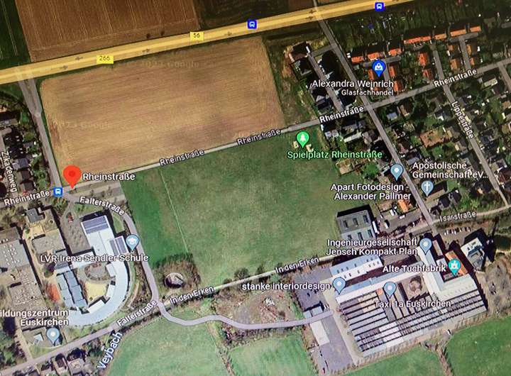 Das unbebaute Grundstück liegt 2 km von der Anschlußstelle A1 Wißkirchen entfernt am westlichen Rand von Euskirchen unweit der Alten Tuchfabrik und des Neubaugebiets Kyllstrasse.