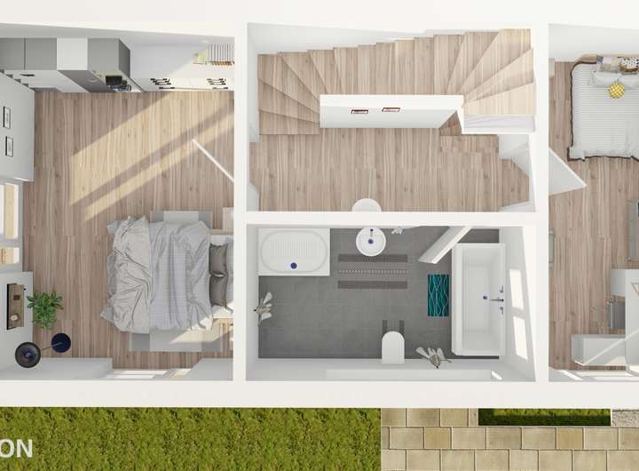 Diverse Ausstattungshighlights sind bereits im Grundpreis inklusive: - Fußbodenheizung in allen Räumen und zusätzlich ein Handtuchhalterheizkörper im Badezimmer. - Hochwertig ausgestattete Badezimmer mit Badewanne und moderner ebenerdig gefliester Dusche mit schicker Ablaufrinne. - Innentüren mit einer komfortablen Höhe von ca. 2,11 m. - Hochwertige 3-fach verglaste Fenster, bi-color, mit elektrischen Rollläden. - Umfangreiche Elektroausstattung der deutschen Markenhersteller Busch & Jäger oder Gira. - Massive Stein auf Stein Bauweise mit Wärmeverbundsystem für bestmöglichen Wärme- und Schallschutz. - Alle Pflasterarbeiten wie im Freiflächenplan dargestellt inklusive inkl. Terrassen mit ca. 15 qm Fläche und frostfreier Außenzapfstelle. - Eichenparkett in den Wohn-/Schlafbereichen und großformatige Fliesen in Küche, Bad und Gäste-WC - Maler- und Tapezierarbeiten