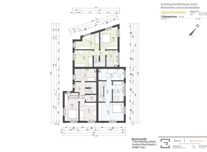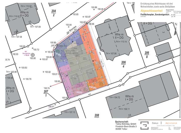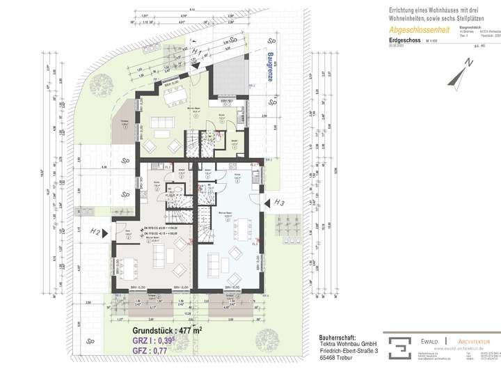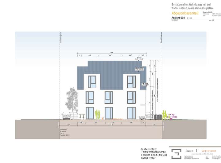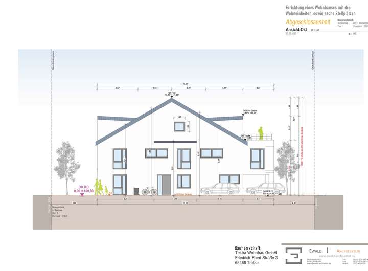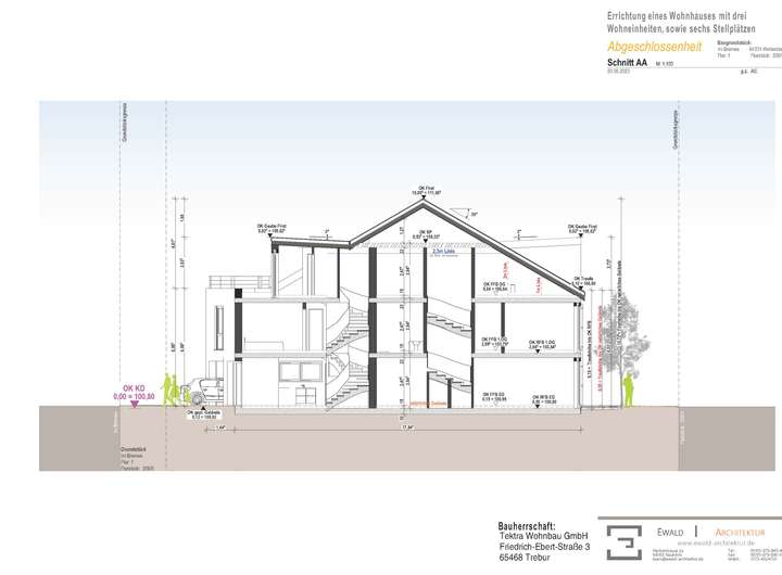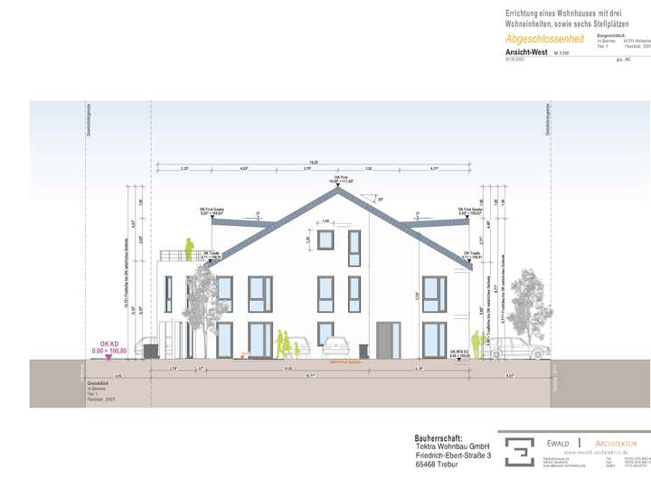 Wohlfühlen für die ganze Familie Zum Verkauf stehen drei Häuser, die in einem Komplex zusammengefasst sind. Sie verfügen über einen jeweils separaten Eingang und bieten Ihnen und Ihrer Familie eine erstklassige Lebensqualität: ein wunderbares, hochwertiges Zuhause mit Gartenanteilen in einer ruhigen Wohngegend, ein fantastischer Grundriss, der die Bedürfnisse Ihrer Familie widerspiegelt und eine hervorragende Anbindung an Schulen, Geschäfte, Nahverkehr und Autobahn. Für dieses Projekt haben sich ein erfahrener Rohbaumeister sowie ein renommierter Architekt zusammengefunden und das Bauunternehmen TEKTRA Wohnbau GmbH gegründet. Das Ergebnis ist eine Qualität, die selbst die Inhaber überzeugt. Architektur die begeistert, funktioniert, sich harmonisch in die Umgebung einfügt und eine gekonnte Kombination aus zeitloser Moderne schafft. Schon die stilvolle Erscheinung macht deutlich, dass es sich hierbei nicht um ein Haus “von der Stange” handelt. Ein sehr gelungener Ort zum Leben und das zu einem attraktiven Preis- Leistungsverhältnis. Ihr neues Zuhause bietet einen großzügigen und geselligen Wohn-, Ess- und Kochbereich – das Herzstück des Hauses. Gleichzeitig findet hier jedes Familienmitglied seinen privaten Rückzugsort. Diese Immobilie ist so durchdacht gestaltet, dass Sie jeden Moment als Familie genießen können. Klares Design, viel Licht und hochwertige Materialien bereiten eine Wohlfühlatmosphäre für alle. Die Lage bietet ein optimales Gleichgewicht für gemeinsame Spaziergänge im Wald, freie Zeit im Garten und kurze Wege im Alltag. Lassen Sie sich von dem familienfreundlichen Konzept, der erstklassigen Lage und der gehobenen Ausstattung begeistern. Ihr kompetenter Ansprechpartner steht Ihnen gerne zur Verfügung, um Ihren Wohntraum wahr werden zu lassen. Haus 1 Wohnfläche: ca. 111,04 m² Nutzfläche: ca. 6,11 m² Zimmeranzahl: 4 Terrasse, 2 Außenstellplätze Kaufpreis: 548.500,- € (provisionsfrei) inkl.. Stellplatz Haus 2 Wohnfläche: ca. 122,45 m² Nutzfläche: ca. 15,03 m² Zimmeranzahl: 4 Terrasse, 2 Außenstellplätze Kaufpreis: 599.000,- € (provisionsfrei) inkl. Stellplätze Haus 3 Wohnfläche: ca. 111,31 m² Nutzfläche: ca. 15,27 m² Zimmeranzahl: 4 Terrasse, 2 Außenstellplätze Kaufpreis: 577.750,- € (provisionsfrei) inkl.. Stellplätze Um Irritationen vorzubeugen noch eine kurze Info: Die Raumaufteilung im Dachgeschoss entspricht in den Plänen den baurechtlichen Genehmigungen. Bei der Raumaufteilung besteht für Sie jedoch die Möglichkeit mitzuwirken, um Ihre Vorstellungen und Wünsche bei der Umsetzung zu berücksichtigen. Weitere Informationen erhalten Sie gerne unter Telefonnummer: 06152 – 9788 2 –88 oder per Email: verkauf@tektra-wohnbau.de KEINE MAKLER ERWÜNSCHT!