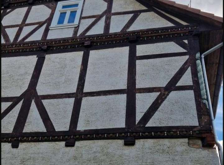 Das teilunterkellerte Bauernhaus wurde traditionell im Fachwerkstil errichtet und stammt aus dem Jahre 1750. Bei dem Kulturdenkmal wurden Entkernungsarbeiten bereits vorgenommen, befindet sich im Wiederaufbau und es sind noch einige Sanierungsarbeiten nötig, wobei die Elektrik und die Fenster bereits neu installiert und eingebaut sind und auch eine Dämmung schon vorgenommen wurde. Das Sanierungskonzept liegt vor und wurde von einem Architekten und einem Energieberater erstellt und genehmigt. Das Erdgeschoss ist bereits unterfangen, im OG und Dachboden befindet sich Fachwerk aus urigen Eichenbalken.