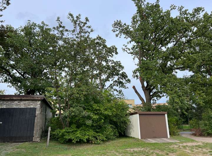 Der Baum und die Sträucher, die sich auf der eigenen, ca. 42 x 5 Meter langen Zufahrt, zwischen den beiden benachbarten Nebengebäuden befinden, werden in den nächsten Tagen, wenn es wieder gestattet ist, entfernt.
