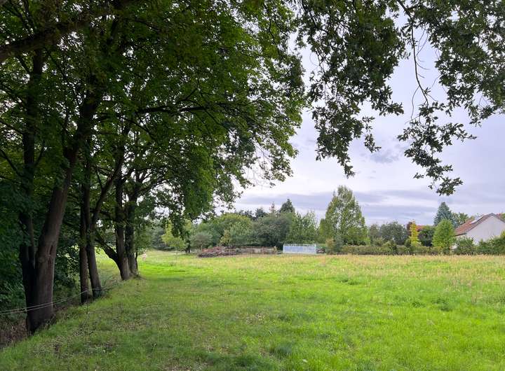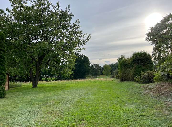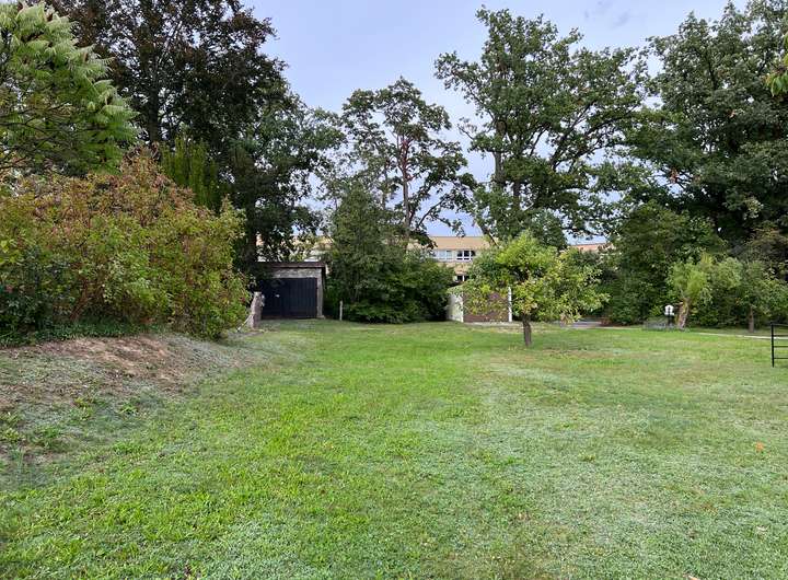 Das 2.784 m² große Grundstück liegt in zweiter Reihe und dadurch ruhig und idyllisch im Grünen.