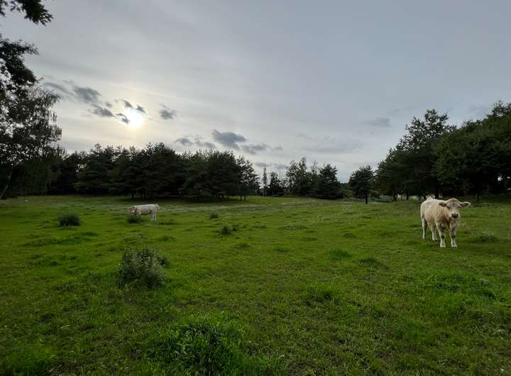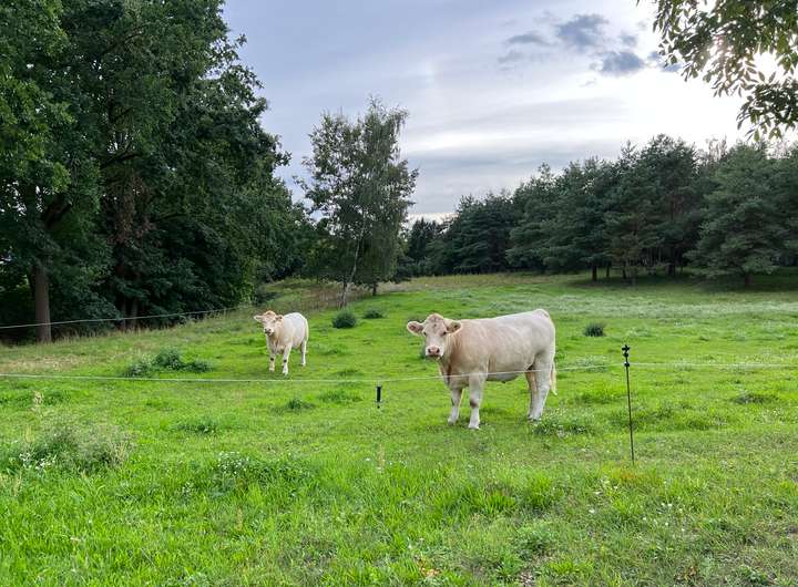 Am süd-westlichen Grundstücksende, auf den benachbarten Grundstücken, befinden sich ein Bachlauf (Der Diebsgraben), eine malerische Wiese, sowie schöne hohe Bäume.