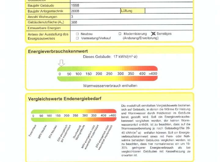 | Energieverbrauchskennwert | 17,0 kWh/(m²*a) |