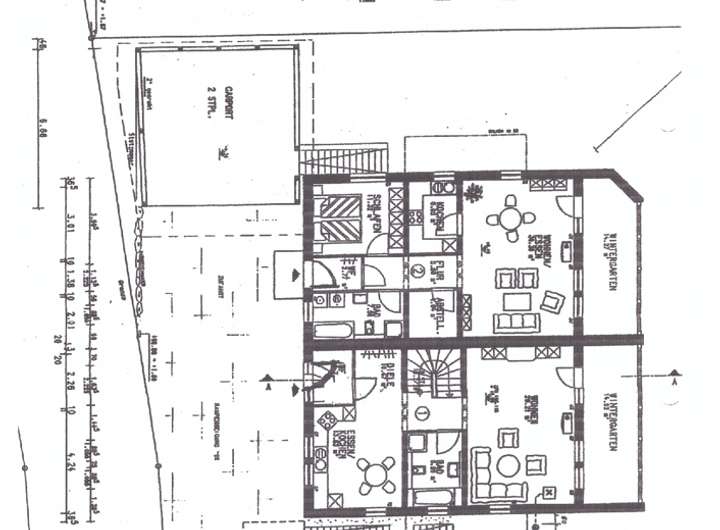 In der linken Haushälfte befinden sich je eine Wohneinheit von ca. 72m²im Erdgeschoss und eine parterre ebenfalls mit ca. 72m²