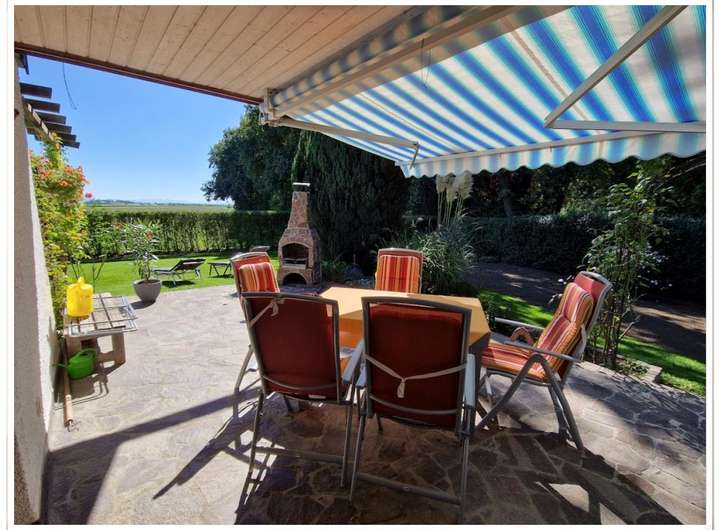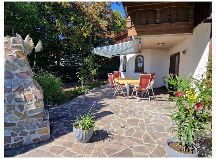 Großteils überdachte Terrasse in Südwest-Ausrichtung;