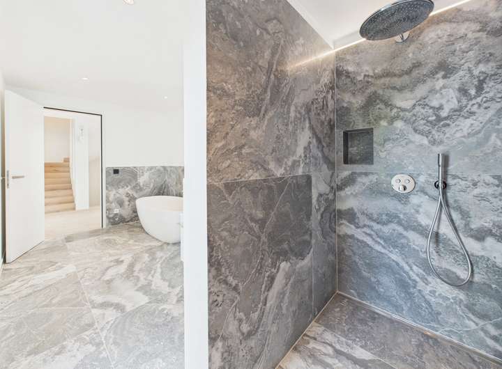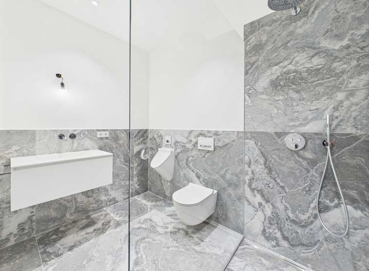 Auf rund 232 m² Wohnfläche verteilen sich 5 stilvolle Zimmer, darunter 4 Schlafzimmer, ein großzügiger Wohnbereich mit offener Küche sowie zwei moderne italienische Designbäder. Die Architektur überzeugt mit lichtdurchfluteten Räumen, durchdachten Grundrissen und hochwertigen Materialien – von großformatigen Designfliesen über edles Massivparkett bis hin zu moderner Sanitärausstattung.