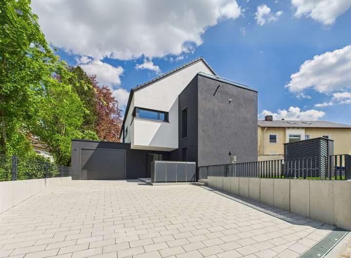 Besonders hervorzuheben ist die nachhaltige und energieeffiziente Bauweise nach KfW-40-Standard mit integrierter Photovoltaikanlage, Wärmepumpe mit Kühlfunktion, Wohnraumlüftung und Smart-Home-System von LOXONE.